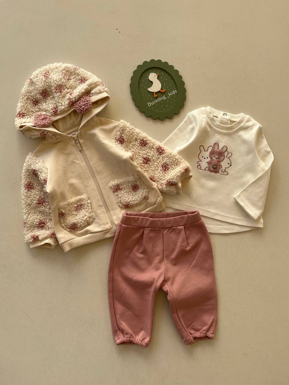 ۱تا۲ماه:قدسویشرت۲۶/پهنا۲۳/قدشلوار۳۰/قدلباس۲۶/پهنا۲۳
