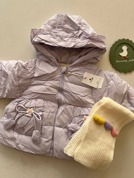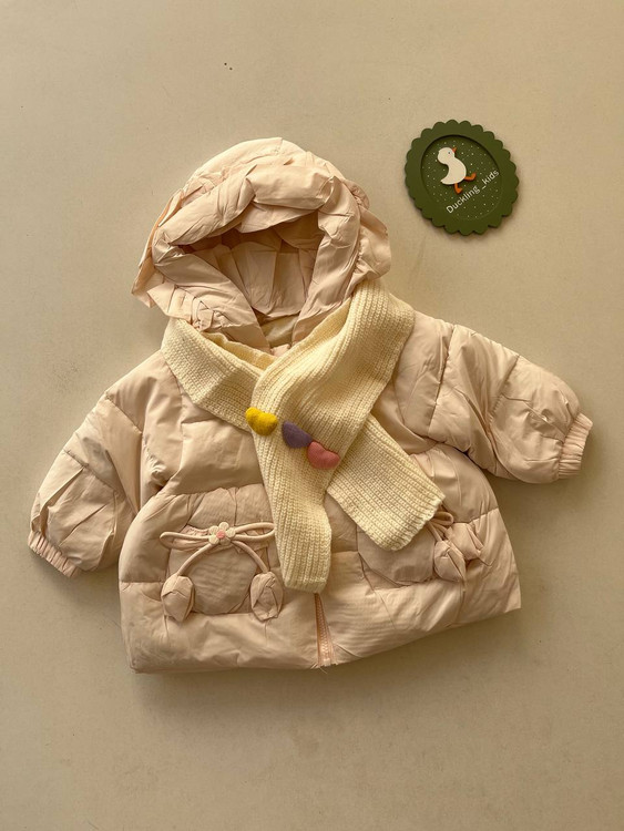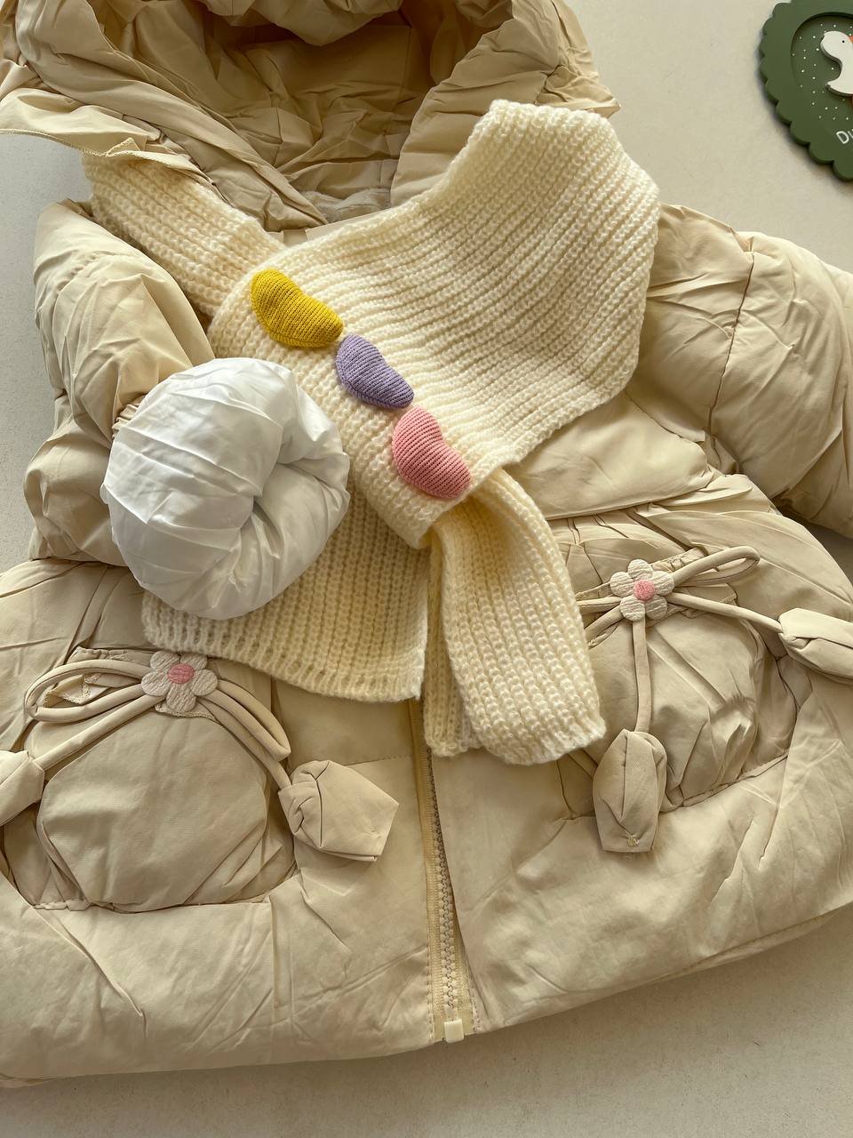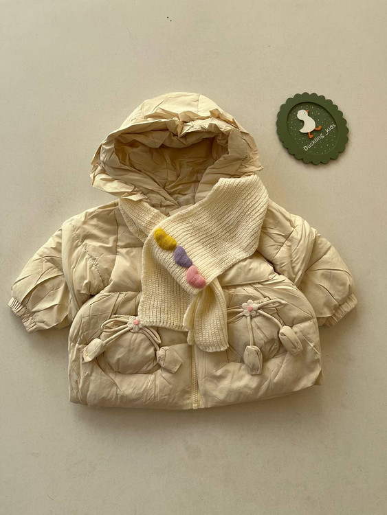 کاپشن دخترانه با شالگردن طرح گل کد ۰۱۰۸