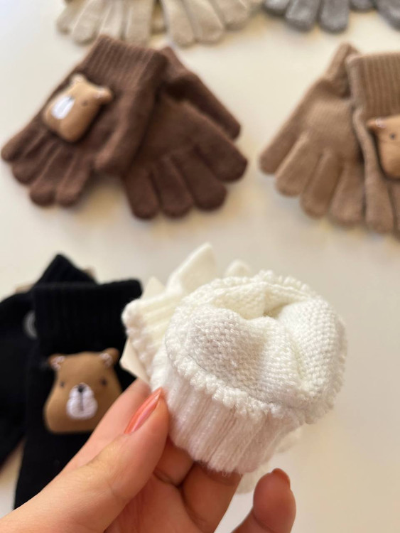 دستکش بافتنی خرس برجسته کد ۰۱۱۳