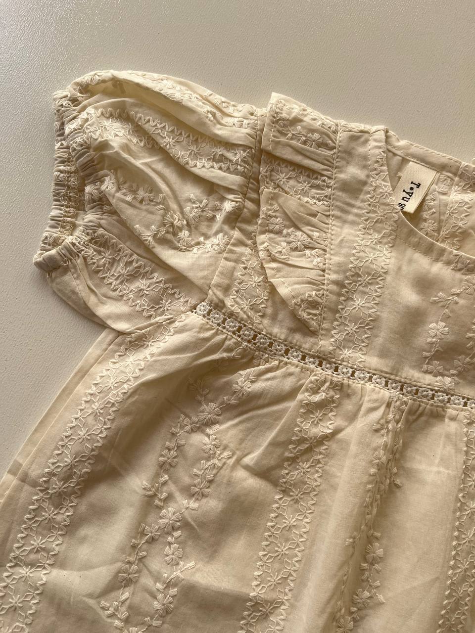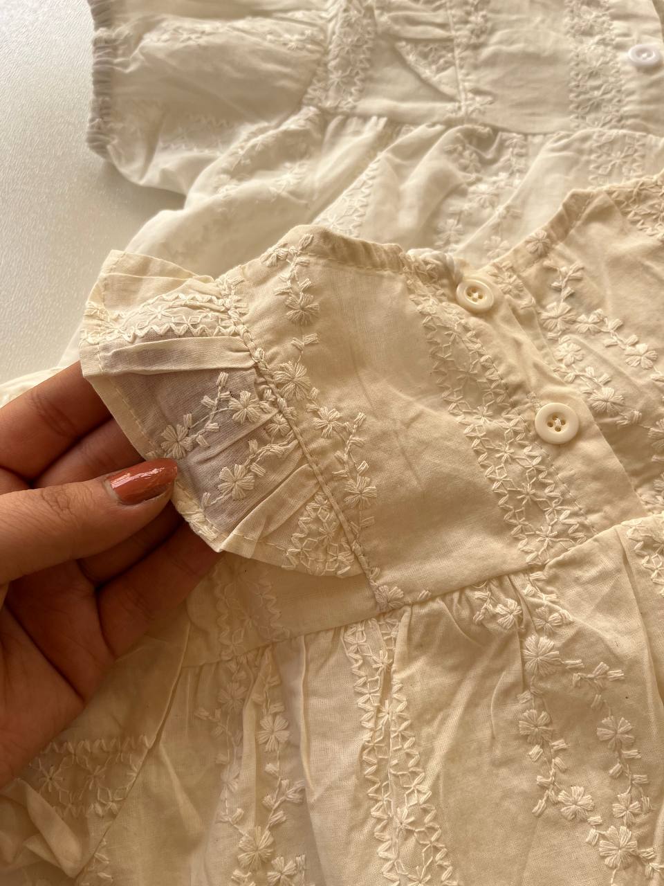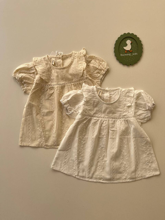 پیراهن خامه دوزی کرم و سفید کد ۰۱۹۱