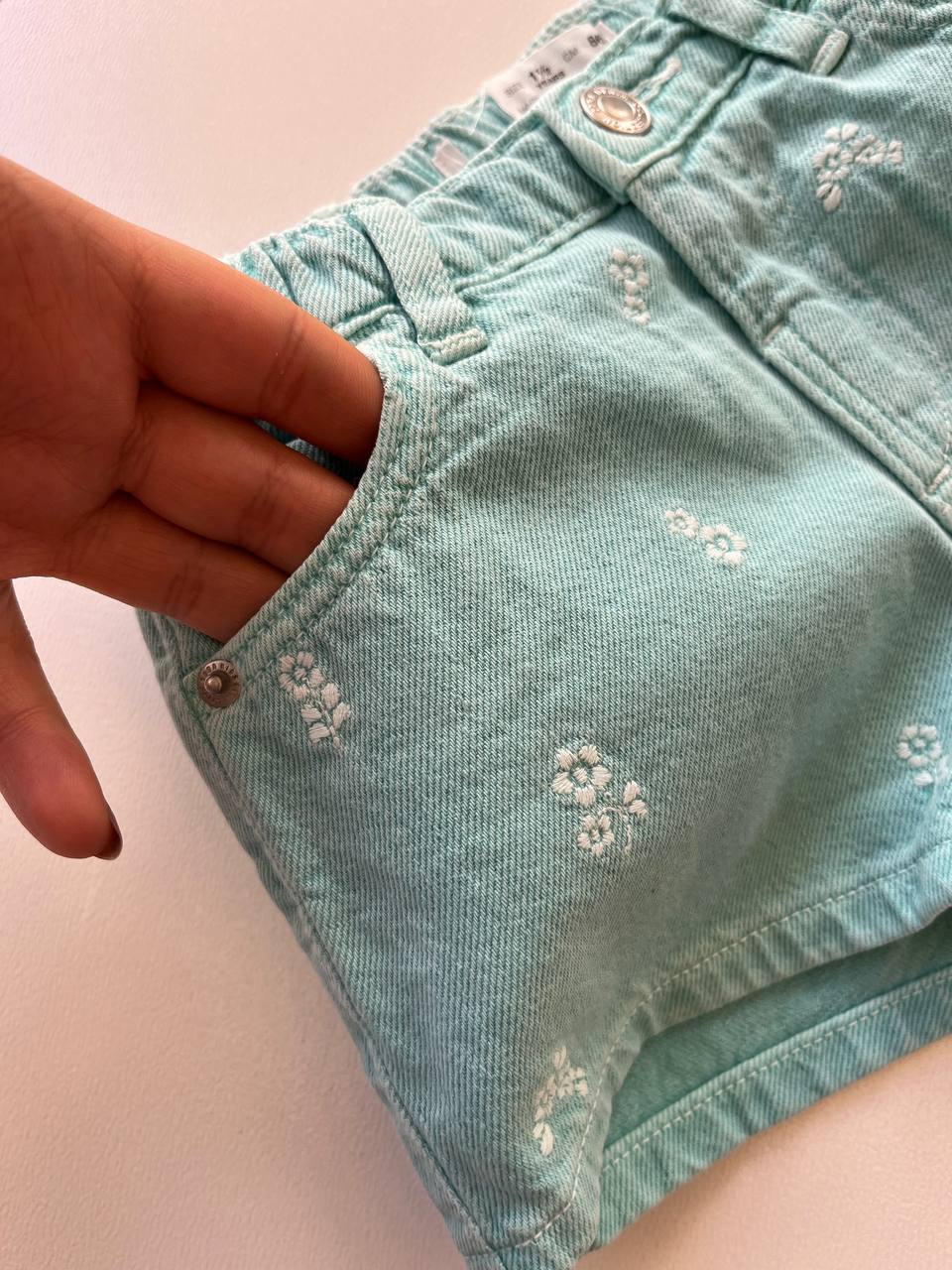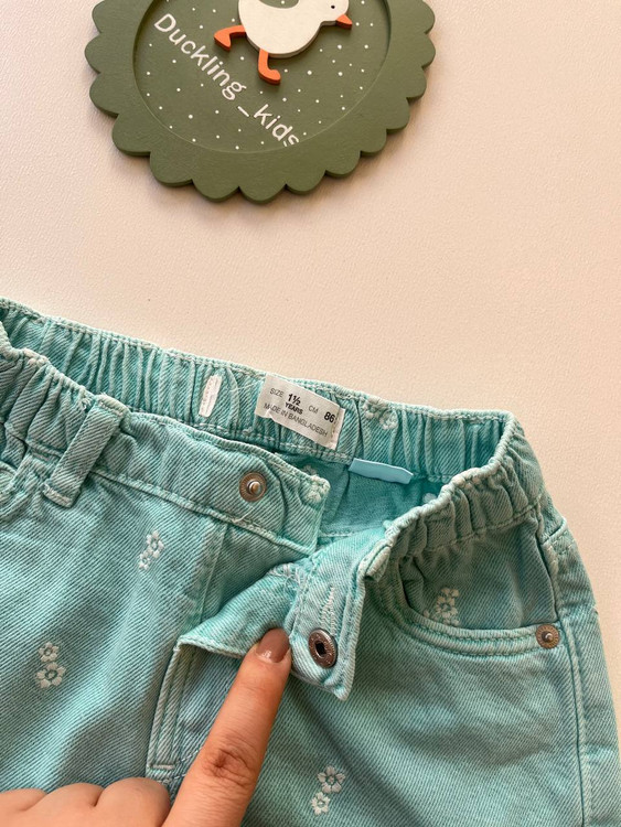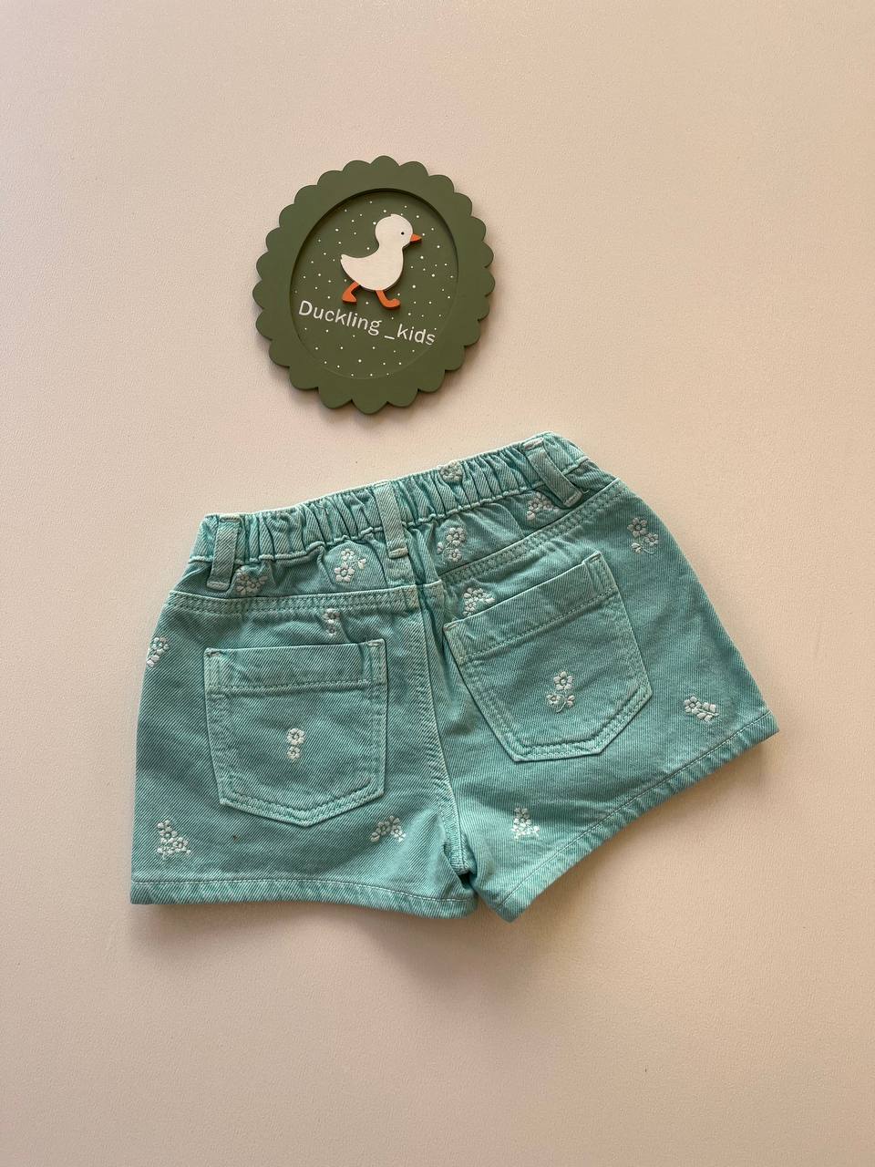 شورتک زارا سبزابی گلدار کد ۰۲۰۶